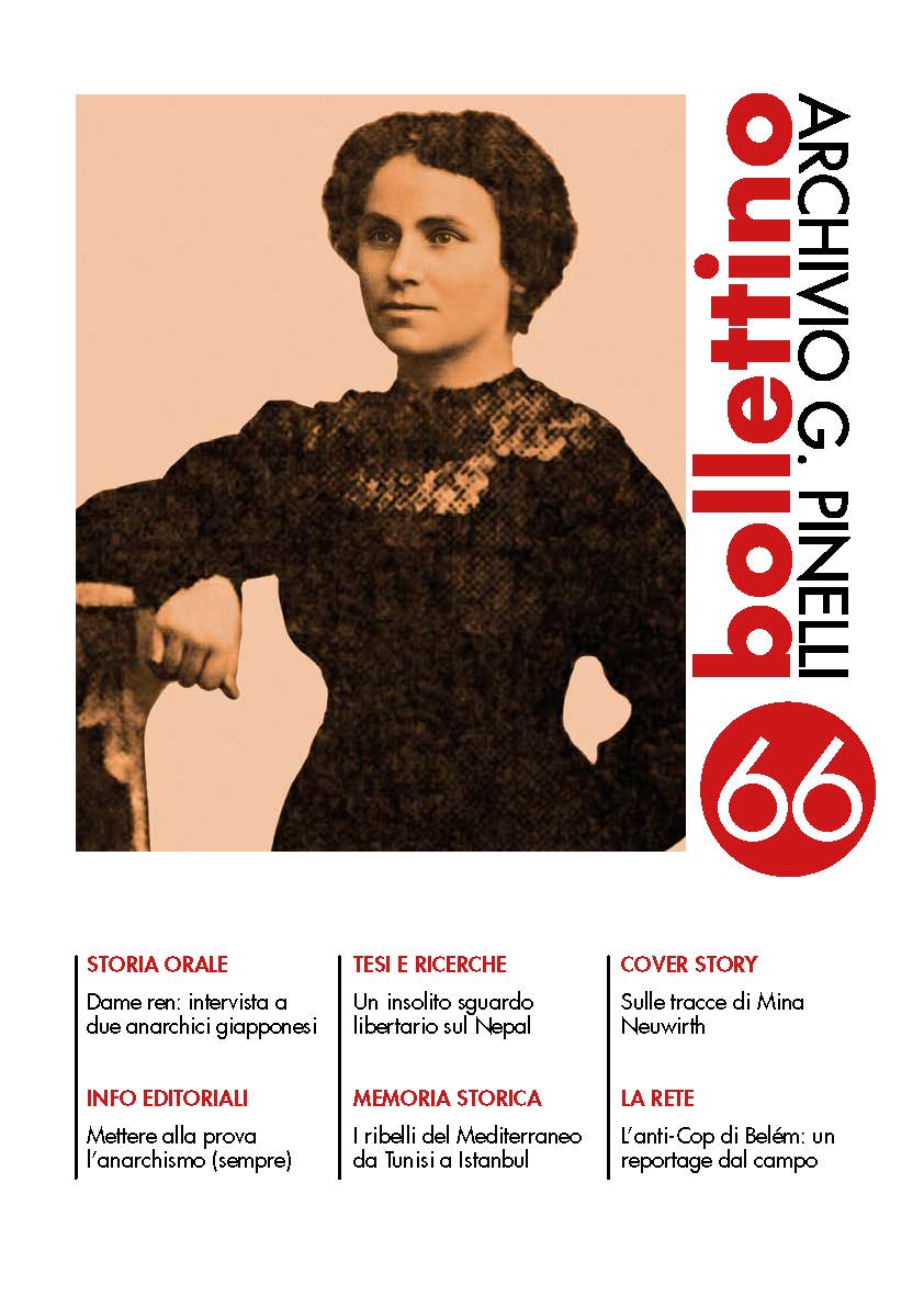 In copertina: Rielaborazione grafica di un’immagine di Mina Neuwirth (1891-19??), anarchica rumena di inizio Novecento. Vedi la sua nota biografica in Cover Story.